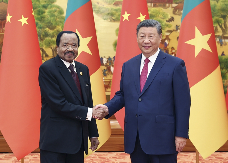 9月4日晚,国家主席习近平在北京人民大会堂会见来华出席中非合作论坛北京峰会的喀麦隆总统比亚。新华社记者 姚大伟 摄