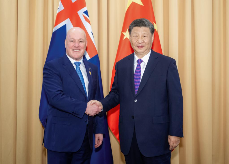 习近平指出,10年前,我访问新西兰,双方决定建立中新全面战略伙伴关系。10年来,中新关系保持健康稳定发展势头,有力增进了两国人民福祉,值得倍加珍惜。中新两国同为亚太地区重要成员,经济互补性、互惠性强,双方没有历史恩怨纠葛,没有根本利益冲突,应该把彼此视为机遇和伙伴,而不是挑战或威胁;应该冷静务实地管控分歧,而不是让分歧定义两国关系。中方愿同新方一道,继续发扬“争先”精神,共同打造相互尊重、彼此包容、聚焦合作、共同发展的中新关系,助力各自国家发展。