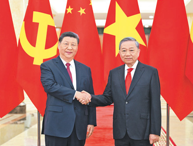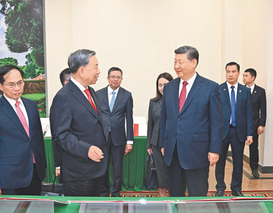 习近平强调,今年是中越建交75周年暨“中越人文交流年”。75年来,无论国际风云如何变化,双方在争取国家独立和民族解放的斗争中相互支持,在社会主义建设事业中携手并进,在推进各自现代化进程中砥砺前行,成为社会主义国家团结合作的典范。面对变乱交织的国际形势,中越两国坚持和平发展,深化友好合作,为世界带来了宝贵的稳定性和确定性。站在新的历史起点上,双方要继往开来、携手前行,赓续“越中情谊深、同志加兄弟”的传统友谊,按照政治互信更高、安全合作更实、务实合作更深、民意基础更牢、多边协调配合更紧、分歧管控解决更好的“六个更”总体目标,高质量推动全面战略合作,确保中越命运共同体建设行稳致远,为构建人类命运共同体作出新的更大贡献。