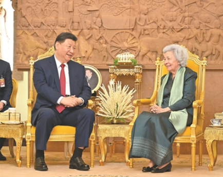 本报金边4月17日电 (记者王玉琳、包晗)4月17日晚,国家主席习近平同柬埔寨太后莫尼列在金边王宫举行会见。