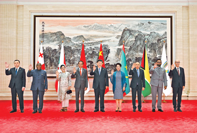 他们是:印度尼西亚总统佐科和夫人伊莉亚娜、毛里塔尼亚总统加兹瓦尼、布隆迪总统恩达伊施米耶、圭亚那总统阿里、格鲁吉亚总理加里巴什维利以及国际大体联代理主席艾德。