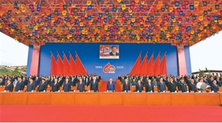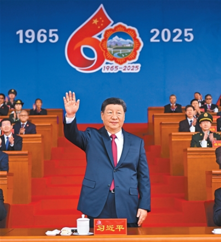 王沪宁发表讲话。(全文见第三版)他说,1965年9月,在党中央亲切关怀和党的民族政策光辉照耀下,西藏自治区宣告成立。这是西藏发展史上具有划时代意义的大事,巩固了西藏和平解放和民主改革的伟大成果,实现了西藏社会制度的历史性跨越。60年来,西藏经济社会全面发展,民族区域自治制度成功实践,民族团结日益巩固,各族人民生活蒸蒸日上,充分展现了中国共产党领导的坚强力量,充分展现了我国社会主义制度的显著政治优势。