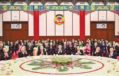 在京中共中央政治局委员、中央书记处书记,全国人大常委会、国务院部分领导同志,全国政协领导同志和曾任全国政协副主席的在京老同志出席茶话会。