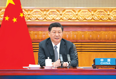 4月22日晚,应美国总统拜登邀请,国家主席习近平在北京以视频方式出席领导人气候峰会,并发表题为《共同构建人与自然生命共同体》的重要讲话。新华社记者 黄敬文摄
