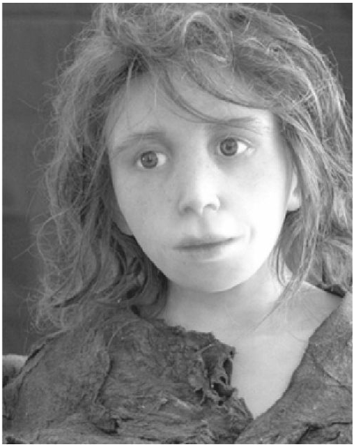 图3 推测的尼安德特男孩样貌重建图。基因证据显示,至少某些尼安德特人可能有白皙的皮肤、柔顺的头发。