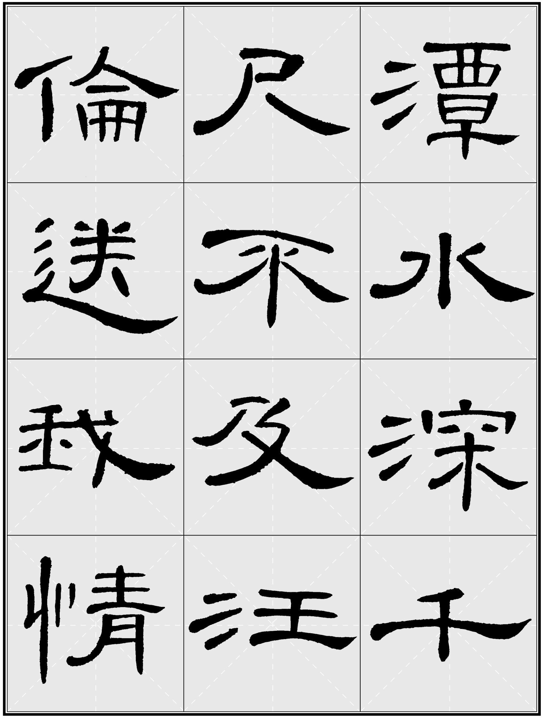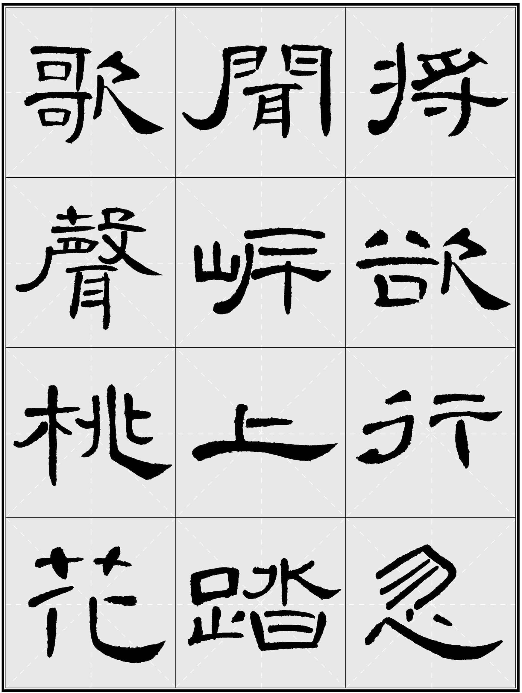 书写时,笔画要注意参差错落,形态相似的笔画或部首,在同一个字或整幅作品中出现了两次或两次以上时,要力求变化,如作品中的“忽”字有三“撇”,要使用不同的写法,避免雷同和呆板。
