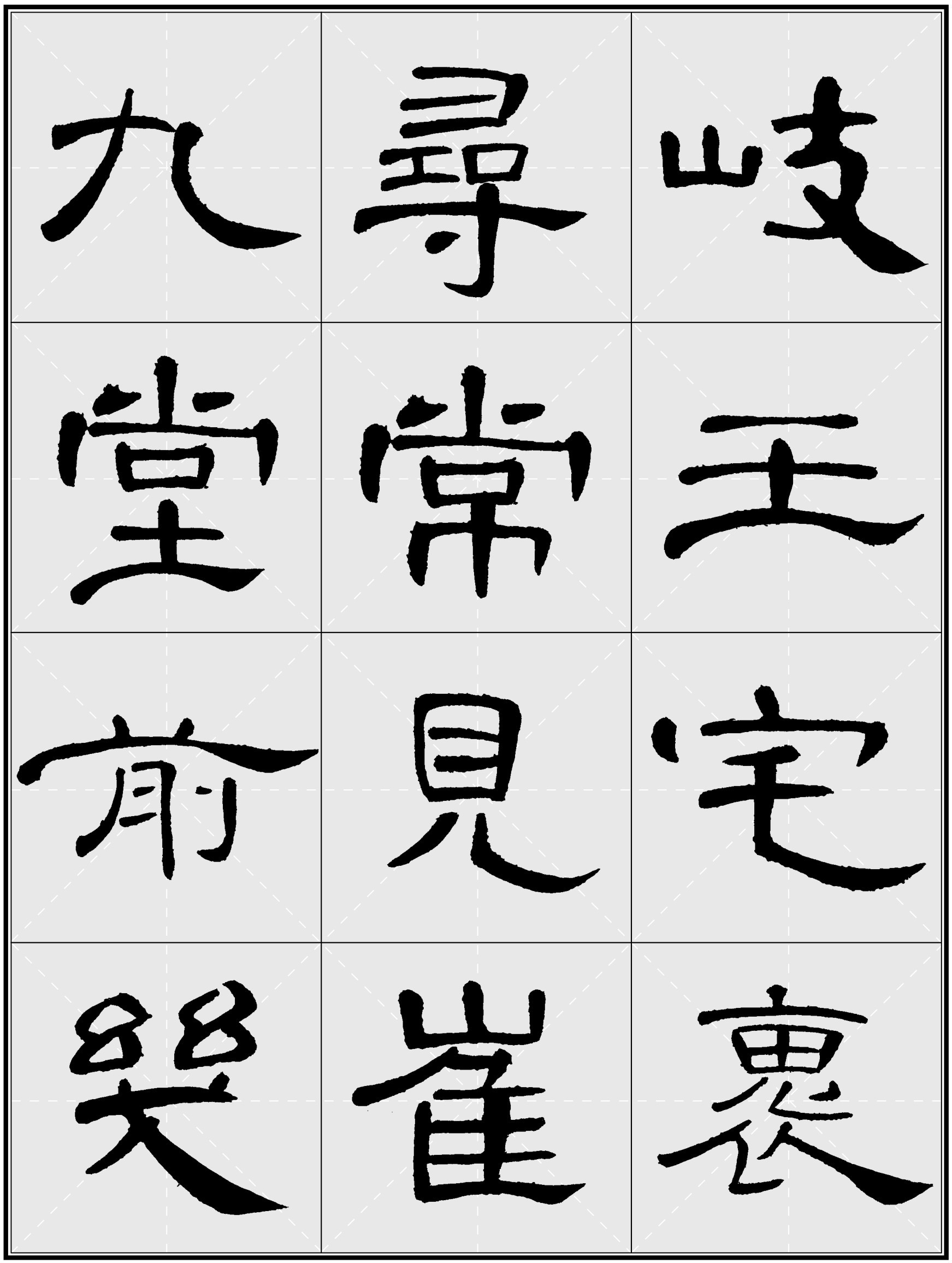 另外,“岐、几(幾)、君”等结构欹侧,重心偏移的字,要注意突出主笔,险中求稳。