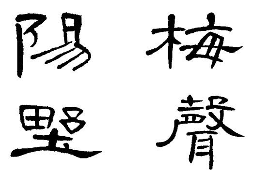 穿插避让 在一个字中,伸展或收缩某些笔画或部件,使字的各部分疏密、大小、长短停匀,字势交错穿插,避让得宜,相得益彰,追求整体的和谐妥帖和生动活泼,如“阳(陽)、梅、野、声 (聲)”四字。