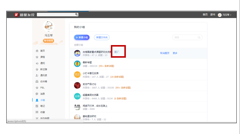 第一步:登录超星学习通,在“我”的页面,点击“小组”,老师们可以看到其他人创建的有趣小组。