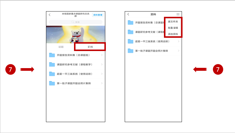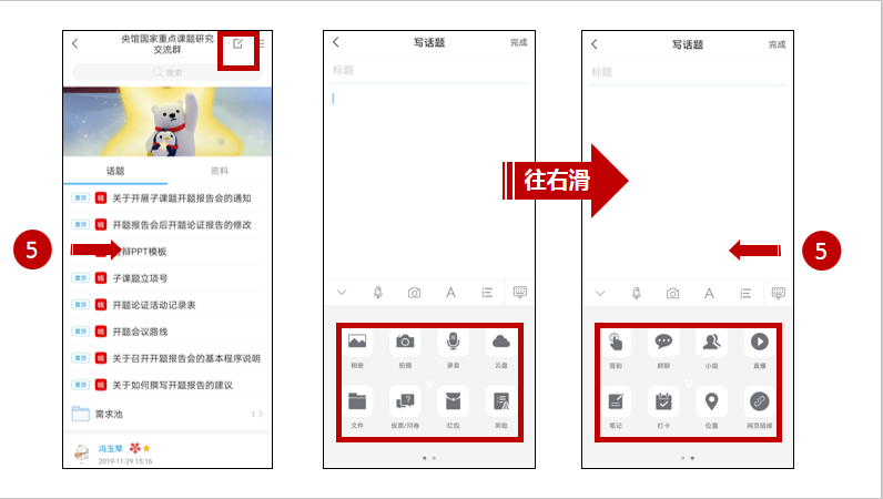 第七步:不仅是“话题”,还可以添加“资料”。可以将各类教研资料放入其中。