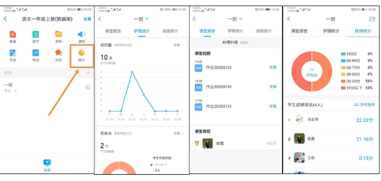 教师可通过学习通【课程】_【统计】模块对整个线上学习、授课、作业情况进行统一管理。