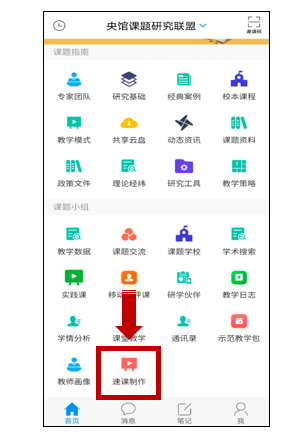 第一步:教师在本单位移动端门户找到“速课制作”应用,点击“速课制作”进入速课制作界面。