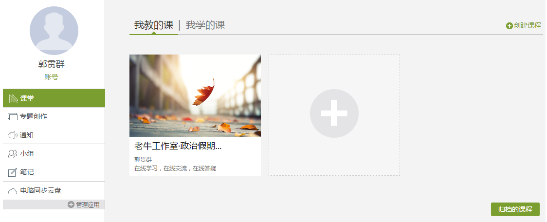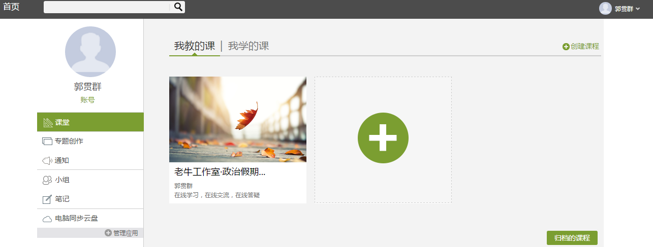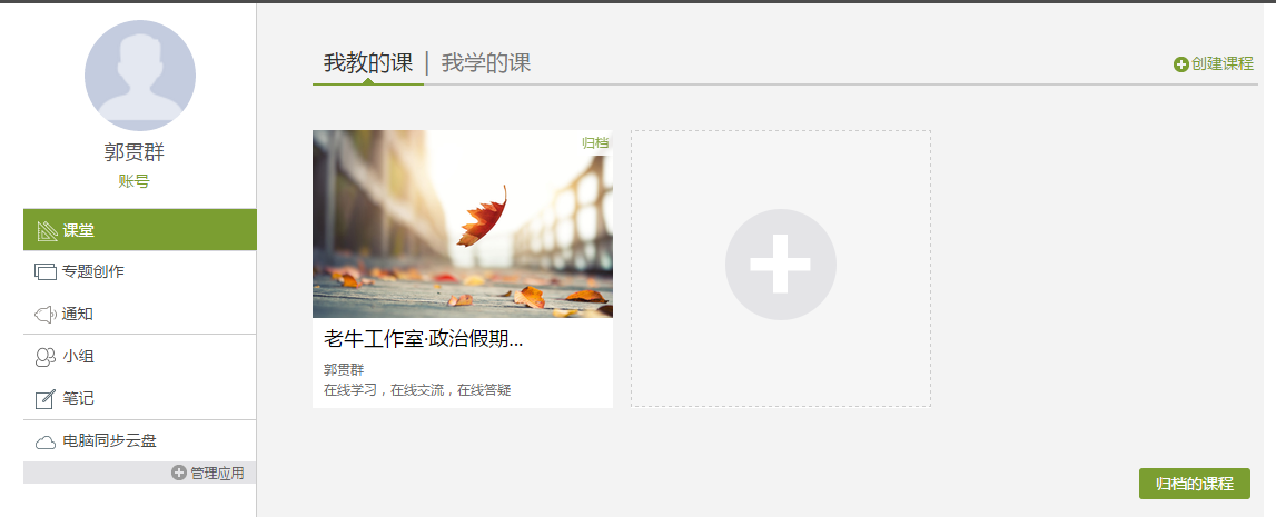 归档的课程:课程右上角有删除按钮,删除后会进入“归档的课程”里。