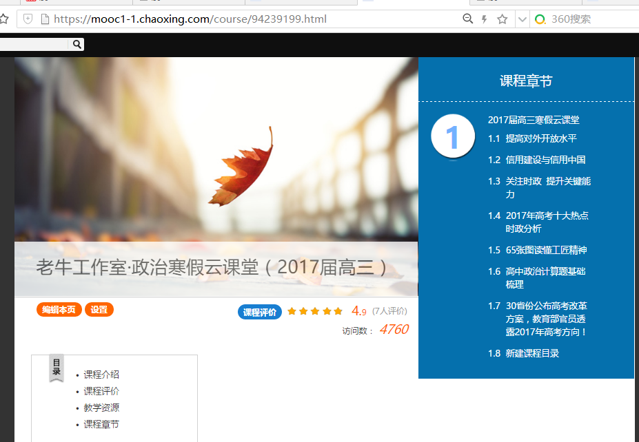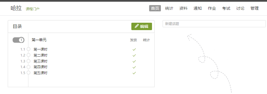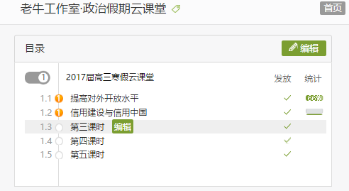 点击绿色底“编辑”两个字进入课程内容编辑页面。(如下图)
