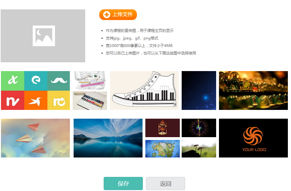 3.上传课程封面图片,或者选择系统自带图片,点击保存即可。(如下图)