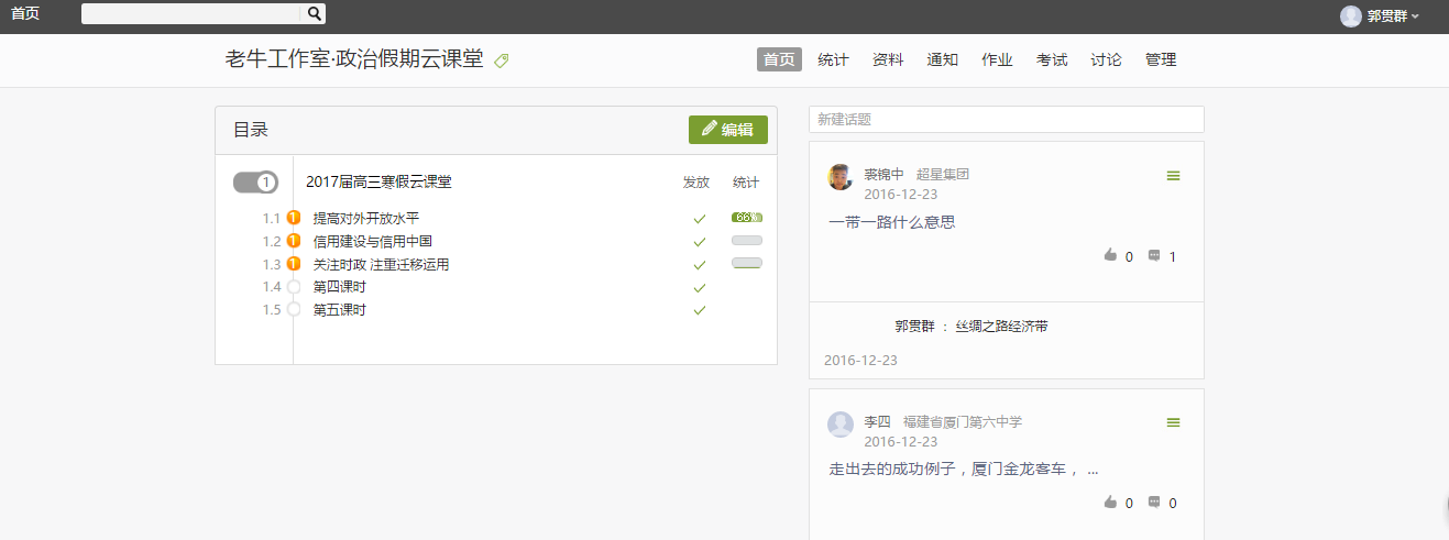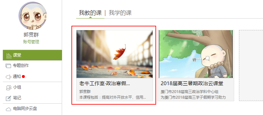 1.进入你的空间,在课堂——“我教的课”点击你要修改的课程封面。如下图红框处。
