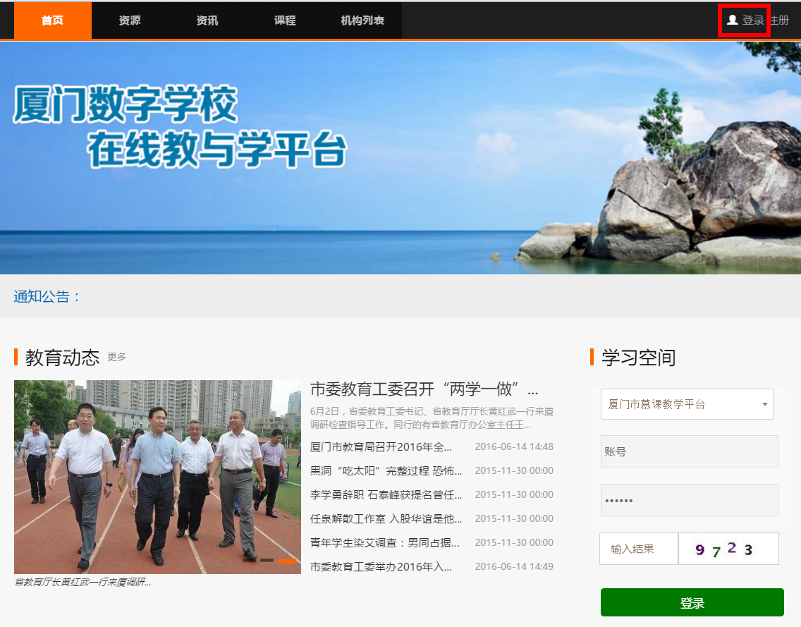 在搜索引擎中输入“厦门数字学校”搜索或在浏览器地址栏中输入网址:http://xm.jichu.chaoxing.com/,即可进入“厦门数字学校在线教与学平台”(建议使用谷歌、火狐、或360安全浏览器、360极速浏览器)