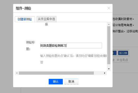 输入测验名称,如下左图,点击确认。编辑框中即呈现如下右图画面,点击编辑按钮(下右图红色框处)。