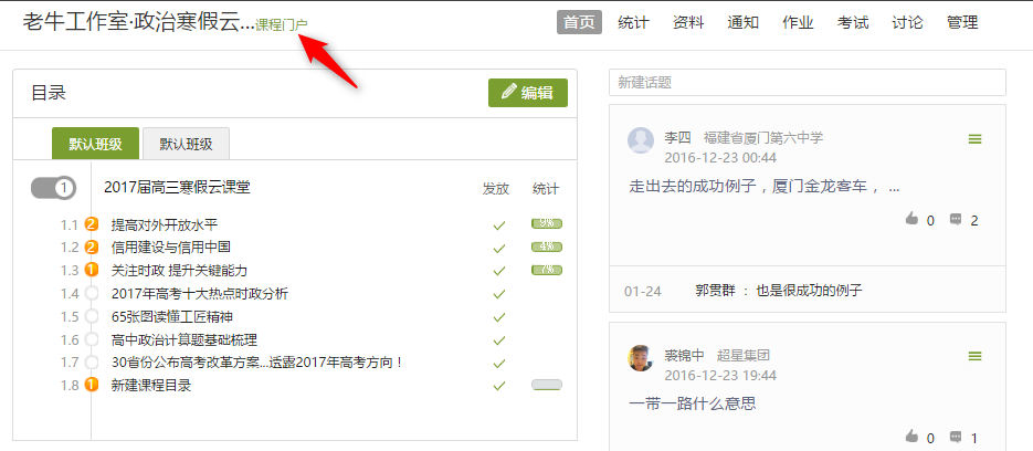 出现如下页面。点击箭头标识处“课程门户”