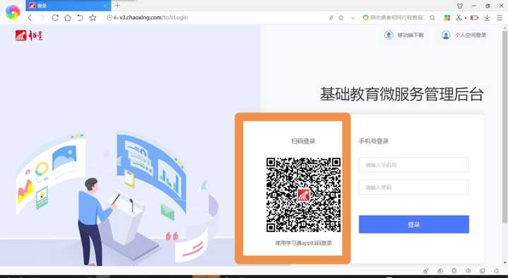 在电脑浏览器中打开微服务平台(v3.chaoxing.com),用学习通扫码登陆。