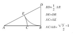 (4)以A为圆心,AE为半径作弧,交AB于C,则点C就是AB的黄金分割点。