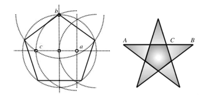 利用线段上的两个黄金分割点,可以作出正五角星、正五边形等。
