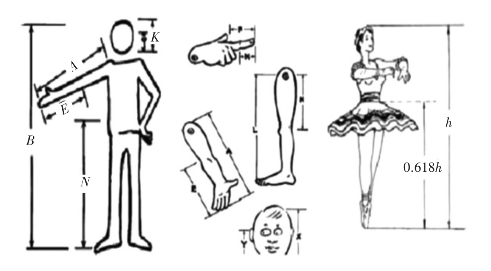画家们发现,按0.618∶1来设计腿长与身高的比例,画出的人体身材最优美,如古希腊维纳斯女神塑像及太阳神阿波罗的形象等双腿与身高的比值均为0.618,从而创造了艺术美。