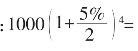 假设本金1000元,在年利率为5%的情况下每半年计息一次,问在复利计息的情况下,二年后本利和是多少?