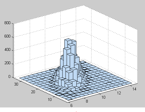 hist3(xy,[15,15]); %绘制二元正太缝补随机数的频率直方图
