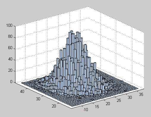 hist3(r(:,1:2),[50,50])%绘制前两维的频数直方图