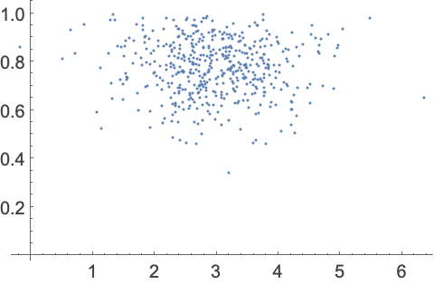 可以对二元分布的点进行模拟,方法是首先选择正态标准偏差的开始值,然后按序产生正态和 β 分布的随机数. 正态变量利用正态标准偏差的开始值生成. 然后将该正态变量作为 β 分布的未知形状参数,从而产生一个 β 变量. 再然后将该 β 变量用作新正态分布的未知标准偏差,依次类推. 该过程进行一定次数的迭代后,最终的正态和 β 变量是模拟点的坐标.