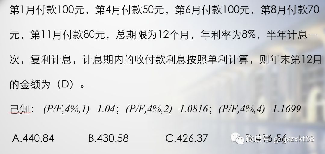 已知: (P/F,4%,1)=1.04;(P/F,4%,2)=1.0816;(P/F,4%,4)=1.1699