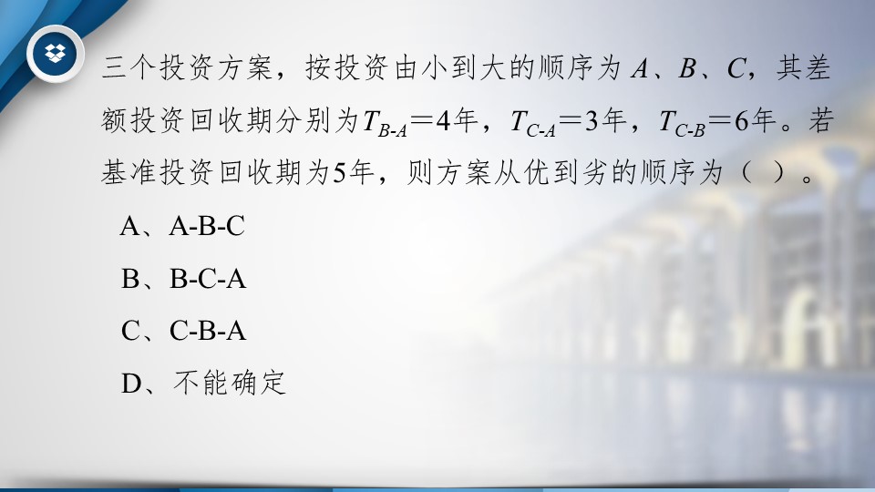 互斥方案的线性盈亏平衡分析(考虑资金时间价值)