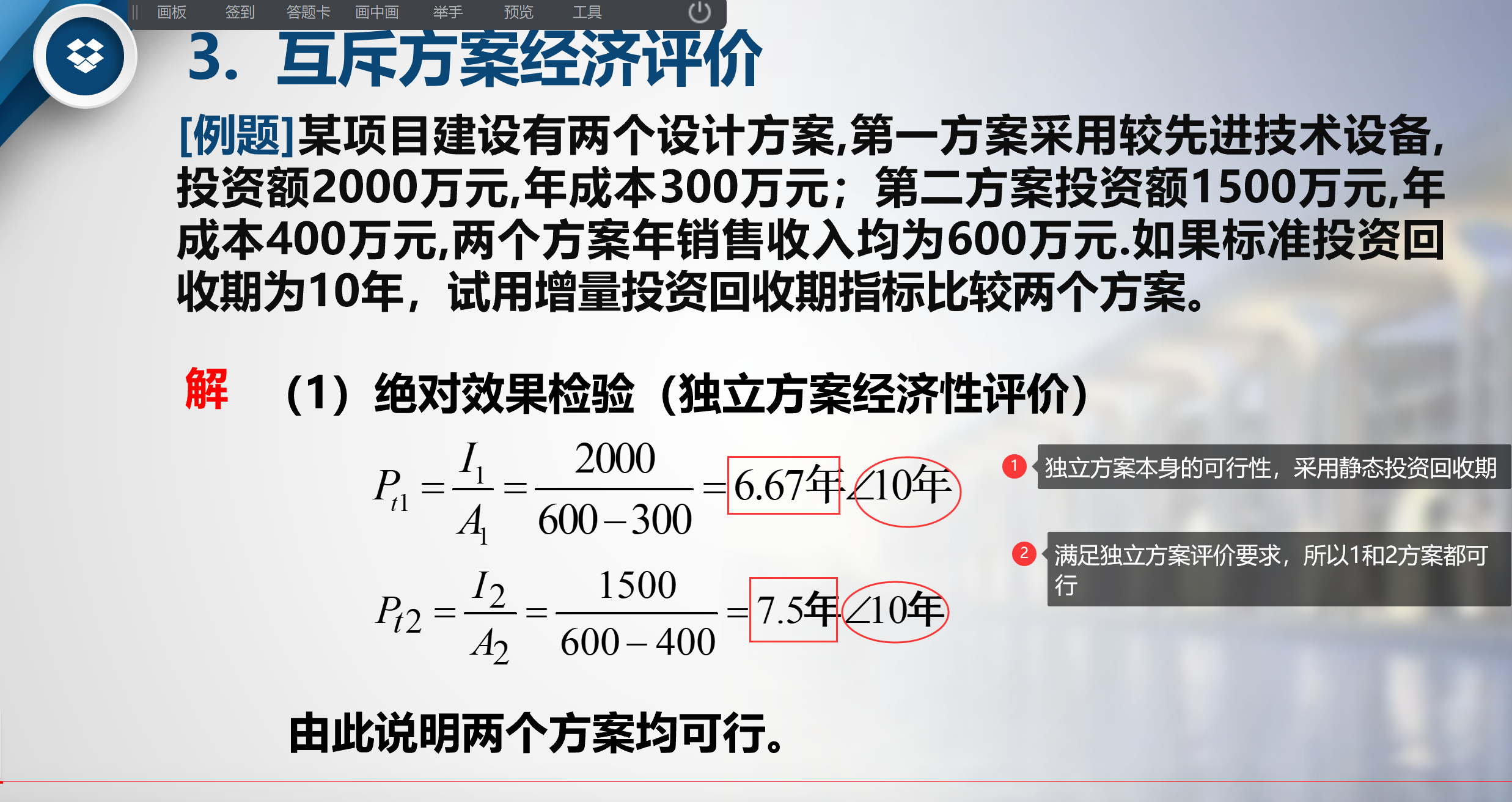 互斥方案的线性盈亏平衡分析(考虑资金时间价值)