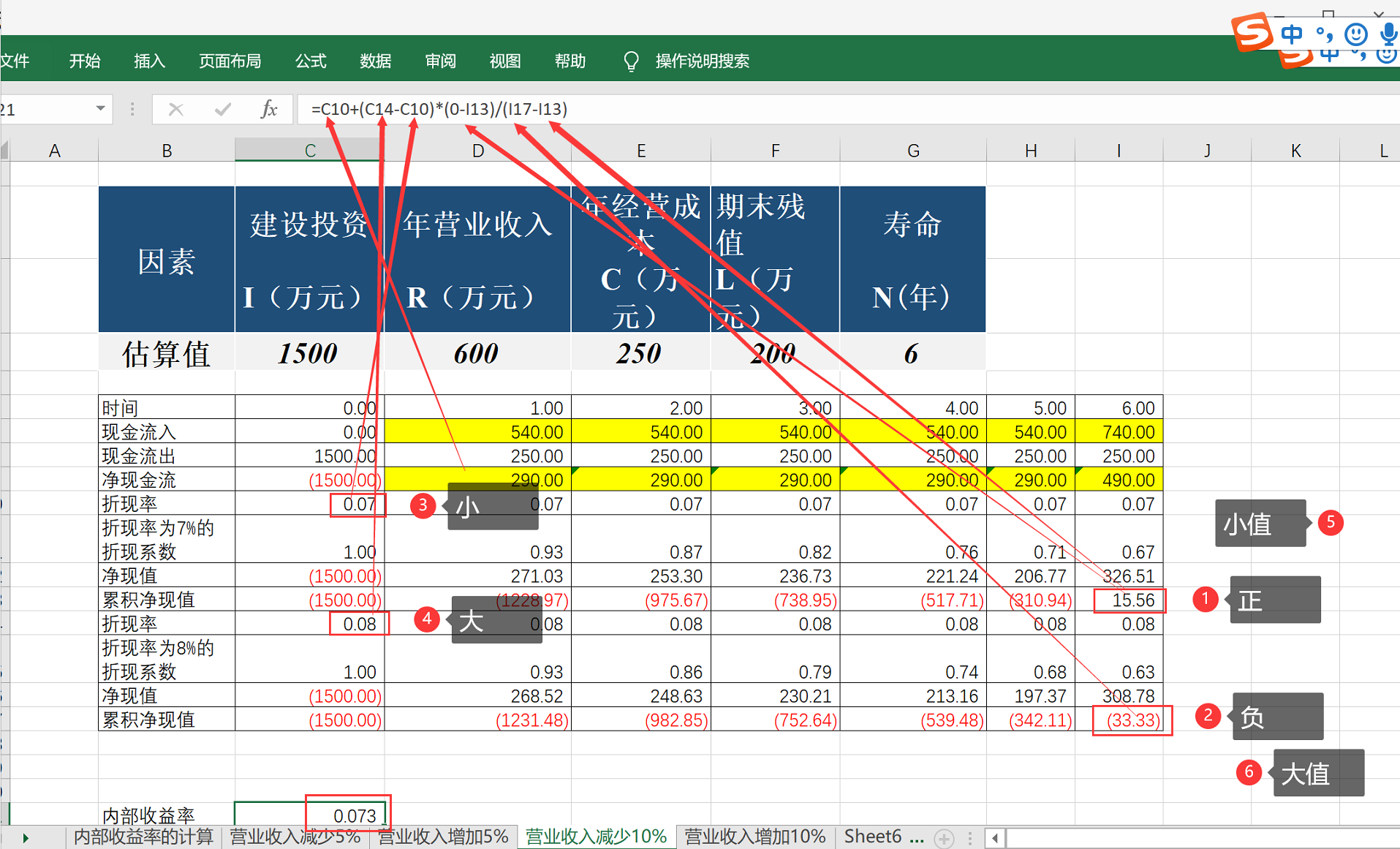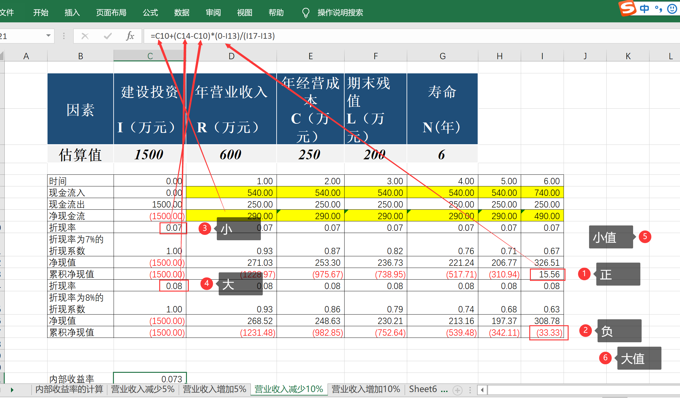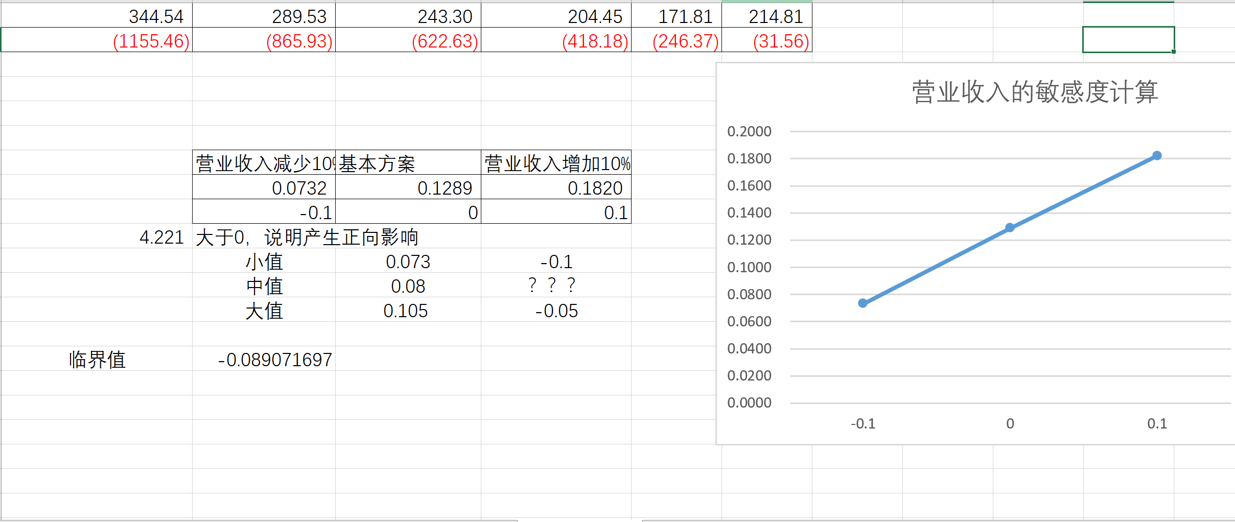 单因素敏感性计算与临界值计算