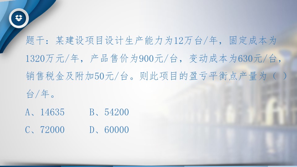 互斥方案的线性盈亏平衡分析(考虑资金时间价值)