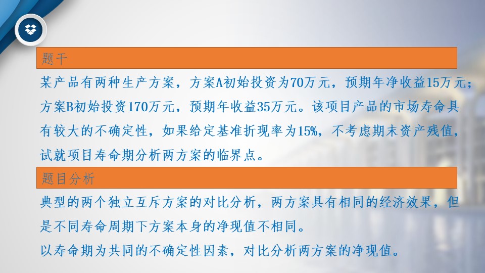 互斥方案的线性盈亏平衡分析(考虑资金时间价值)