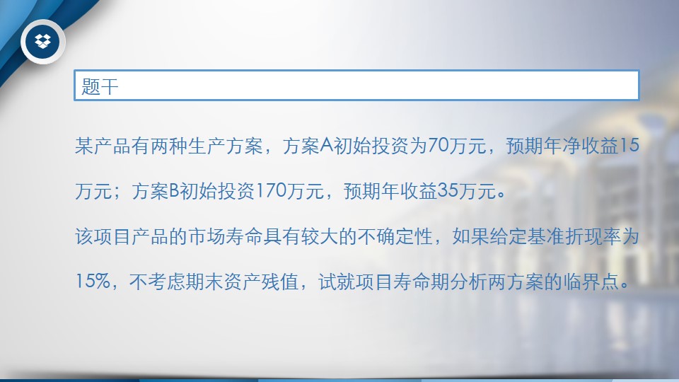 互斥方案的线性盈亏平衡分析(考虑资金时间价值)