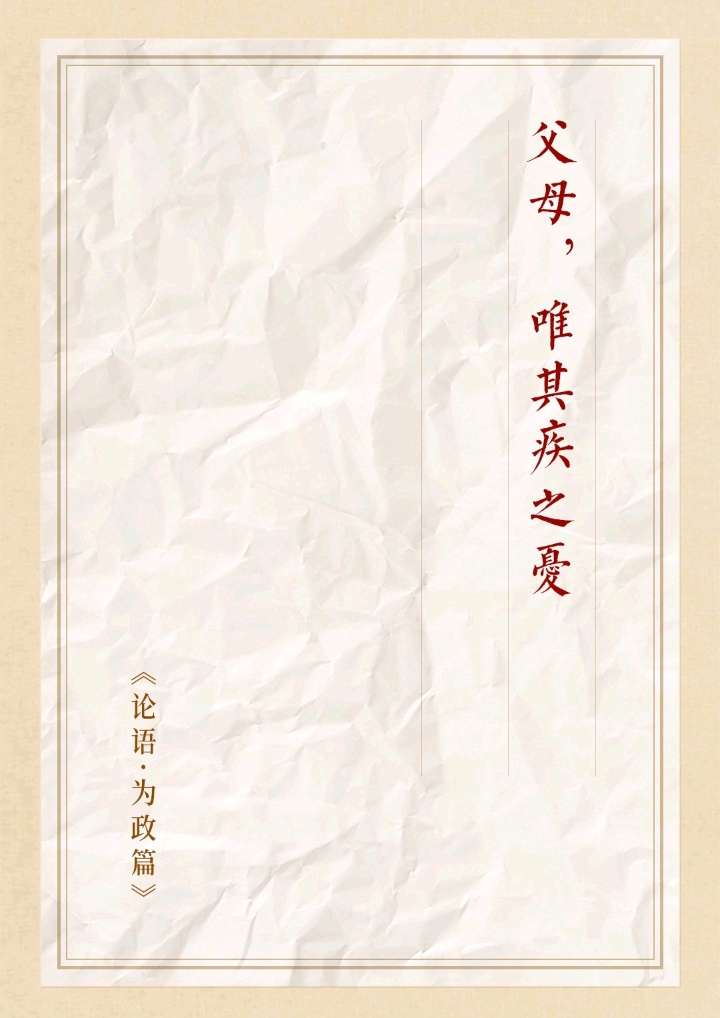 孟武伯问孔子什么是孝道。孔子回答说,所谓孝道,就是父母生病,子女总是担忧。