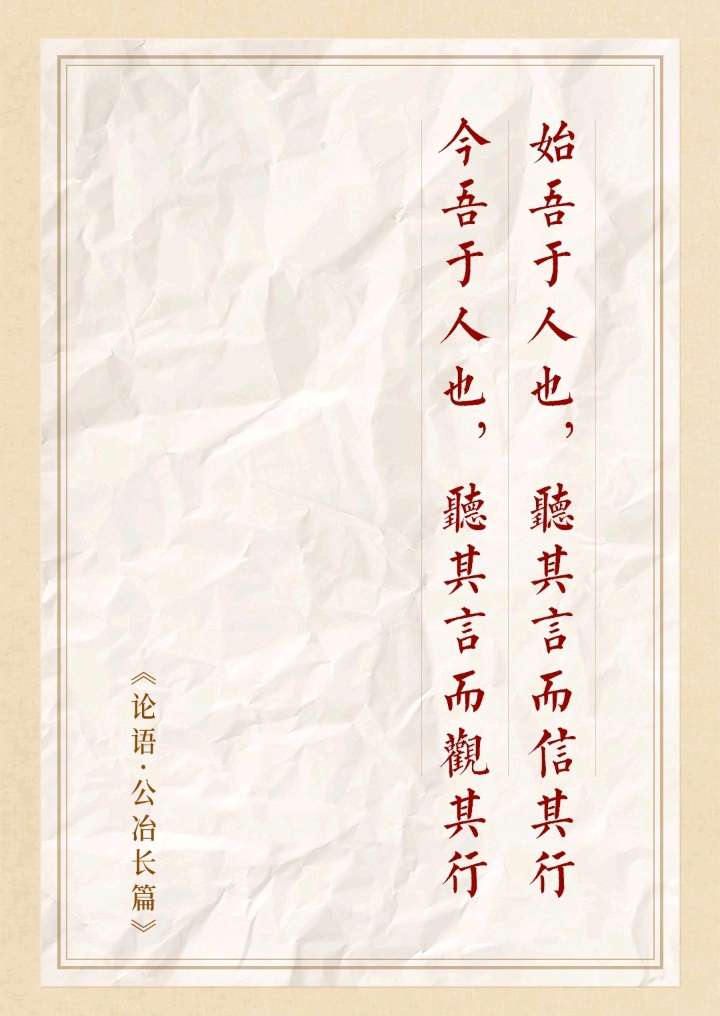 这大概可以帮你理解为什么孔子会在后面说,“原来我和人交往,他说什么我就相信什么,现在我和人交往,要听其言观其行”。