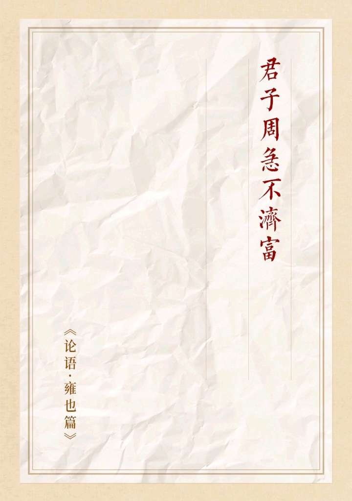 子曰:“赤之适齐也,乘肥马,衣轻裘。吾闻之也,君子周急不济富。”