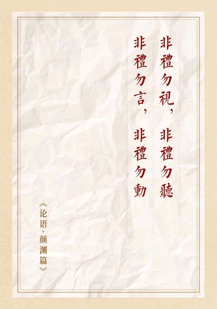 这一问来得好,正撞枪口上,孔子给出了四个具体的可见可闻、可以具体把握的标准:非礼勿视、非礼勿听、非礼勿言、非礼勿动。你看,好问题就能激发出好的答案。这四个具体的标准,解释了什么叫克己复礼,为什么说“为仁由己”的理由。