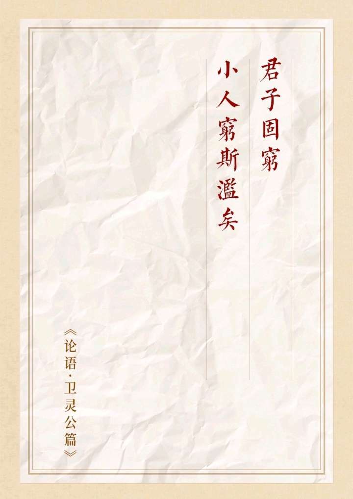 15.2 在陈绝粮,从者病,莫能兴。子路愠见曰:“君子亦有穷乎?”子曰:“君子固穷,小人穷斯滥矣。”