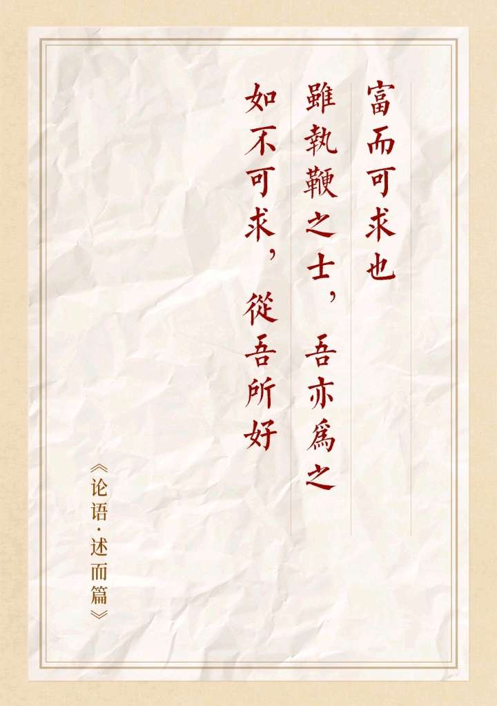 7.12 子曰:“富而可求也,虽执鞭之士,吾亦为之。如不可求,从吾所好。”