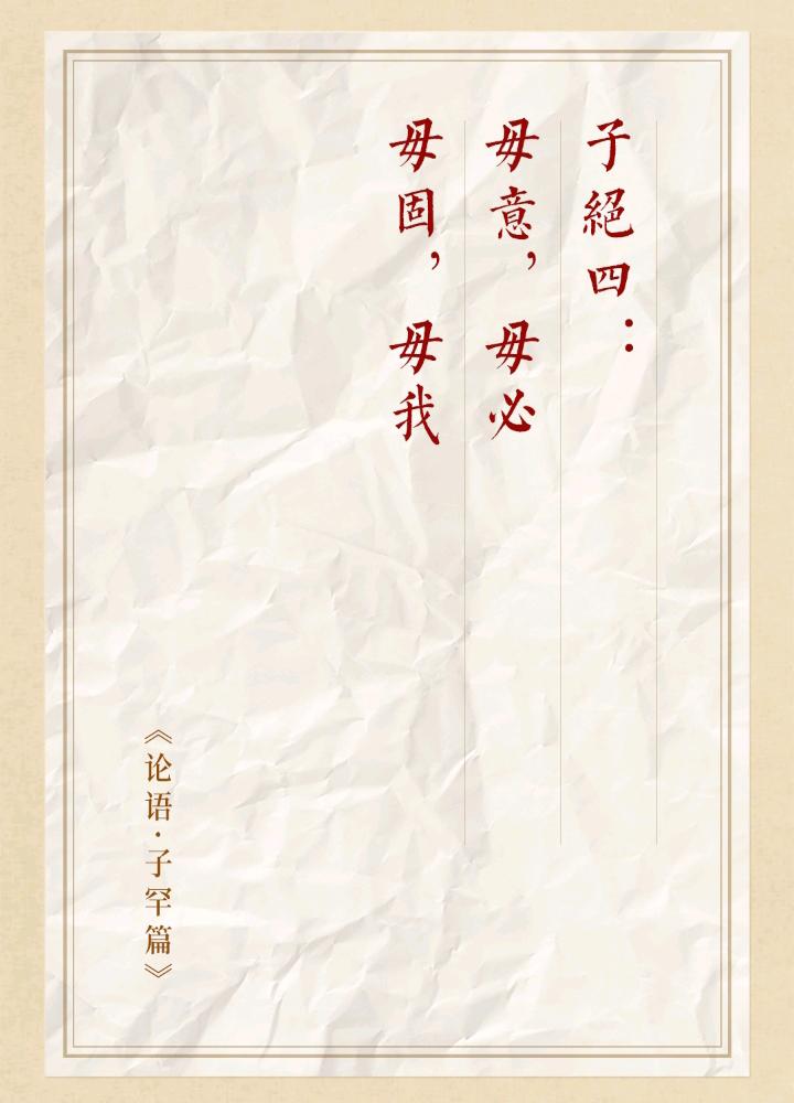 夫子绝无四种(我执):不主观臆测,不绝对断定,不固执拘泥,不唯我独是。