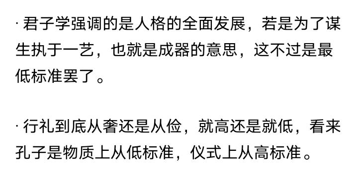 前边咱们学过,孔子说过君子不器,显然孔子这不是真心话。君子学,强调的是人格的全面发展,若是为了谋生执于一艺,也就是成器的意思,这不过是最低标准罢了。