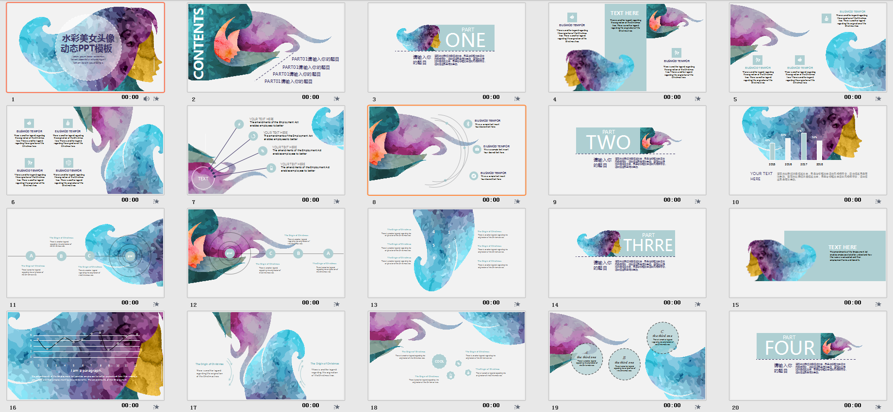 1.4 4.水彩美女头像创意动态PPT模板