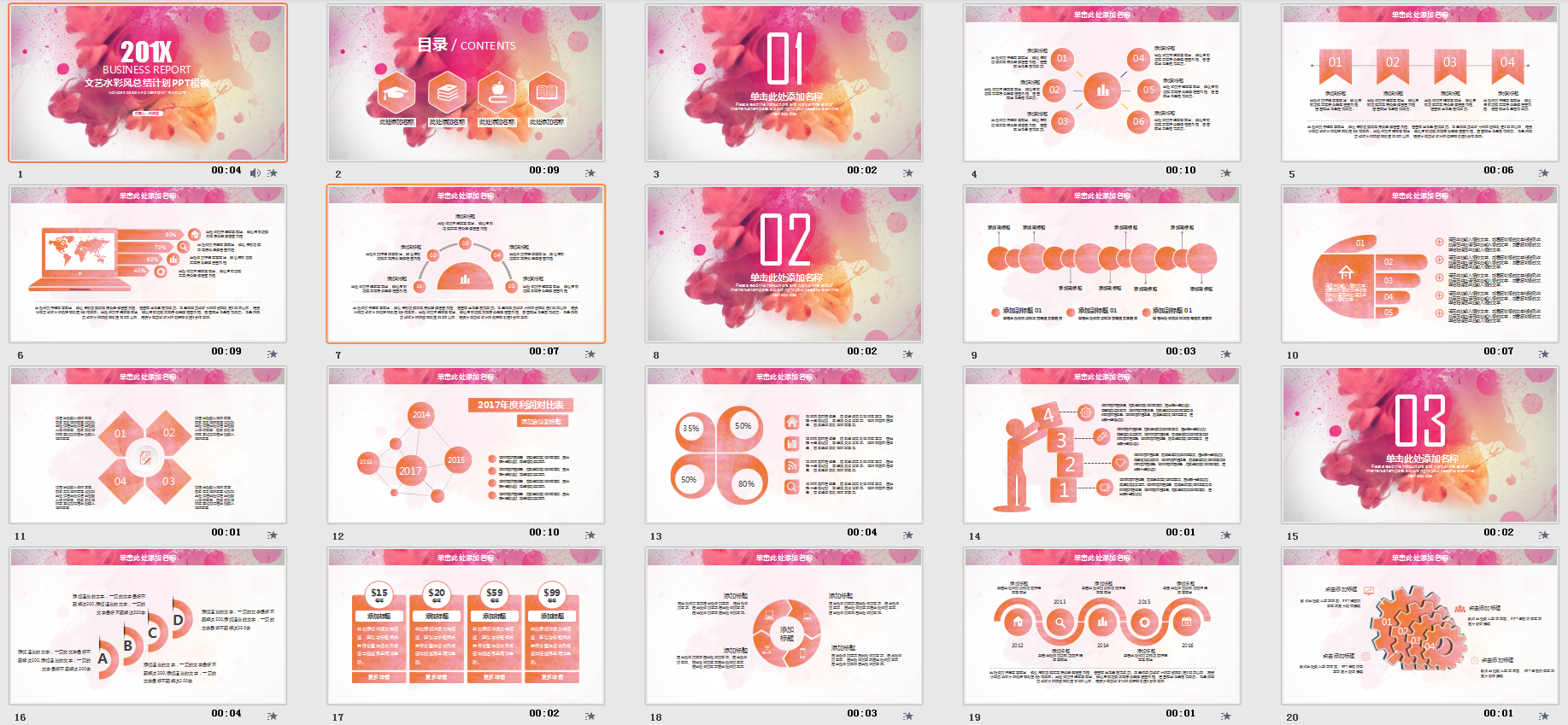 1.7 7.文艺水彩风总结计划动态ppt模板