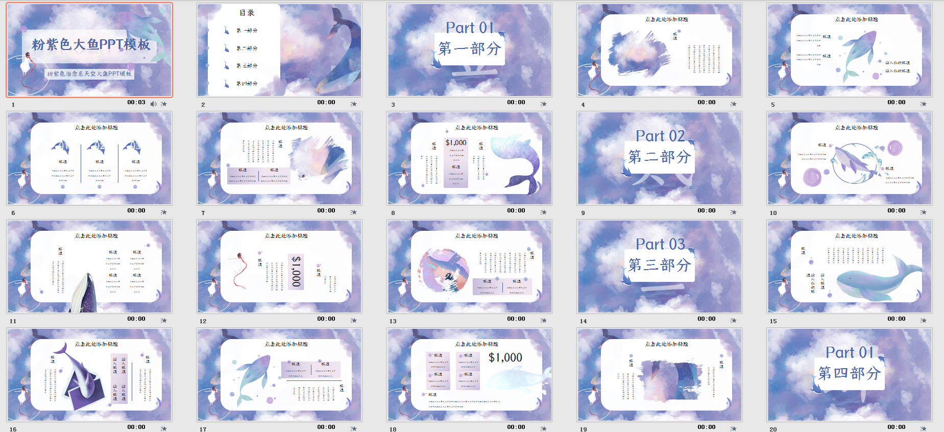 1.15 15.粉紫色天空水彩风梦幻鲸鱼PPT