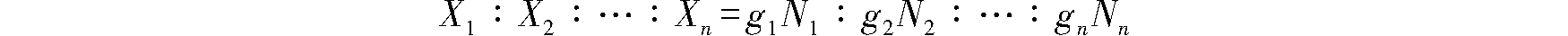 2.条子混和的混比计算 设各种纤维的干混比为Xii=1,2,3,…,n);各种纤维条子的混和根数分别为Nii=1,2,3,…,n);各种纤维条子的干定量分别为gii=1,2,3,…,n)。则各种纤维的混比、条子根数和干定量的关系如下式所示: